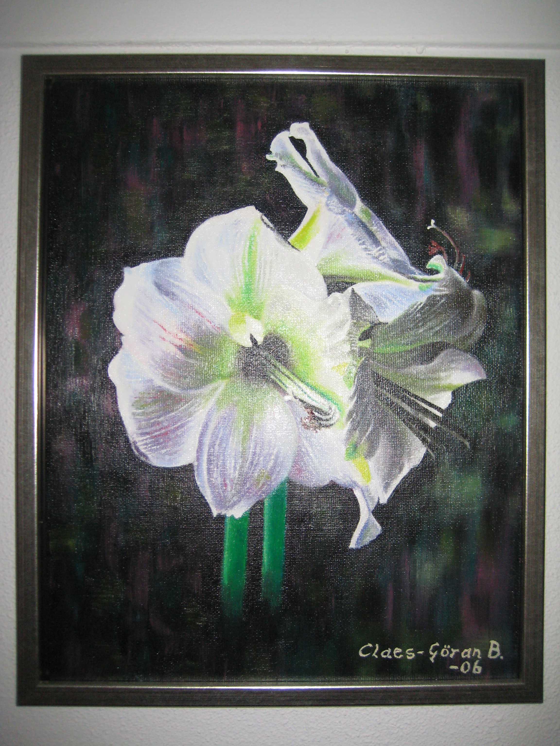 I min ungdom hade jag en dragning åt det konstnärliga. Därför började jag som lärling på en silversmedja i Stockholm och deltog samtidigt i kvällskurser på Konstfack. Jag tyckte det var roligt och trivdes med arbetet i silversmedjan. Men det kom en annan livskallelse i min väg och jag fick lov att växla spår. Men en längtan att få uttrycka mig i bilder har funnits hela tiden. Dock har jag inte gett mig tid och inte vågat ge mig hän, förrän i samband med en livskris i slutet på 80-talet. Då hade jag tid och tog fram min kreativitet och började måla. Sedan dess har jag gått några målarkurser, och till och från satt mig vid staffliet. Här i galleriet kan du ta del av några av mina tavlor som tillkommit under årens lopp. Min förhoppning och önskan är att få tid att fortsätta med mitt måleri. I fortsättningen kommer jag givetvis att lägga ut de tavlor jag målar. Du som önskar köpa någon tavla är välkommen att kontakta mig.